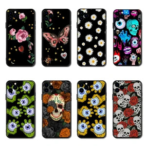 Retro skull soft Case For iPhone 13 12 11 Pro Max mini 7 8 6 6S Plus XR X XS MAX SE phone Cover Fashion flower daisy fundas capa